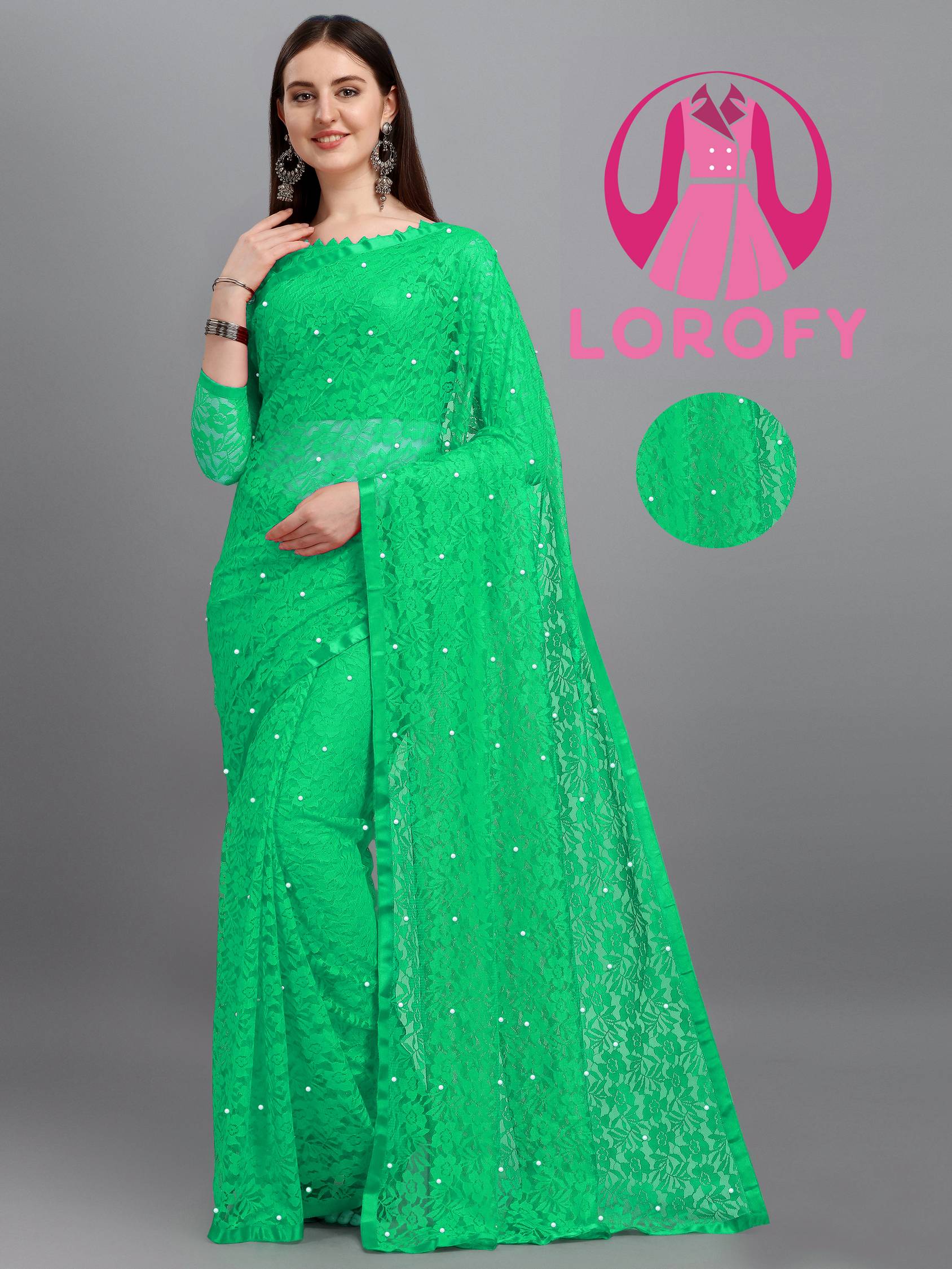 LOROFY Self Design Bollywood Net Saree (Multicolor)