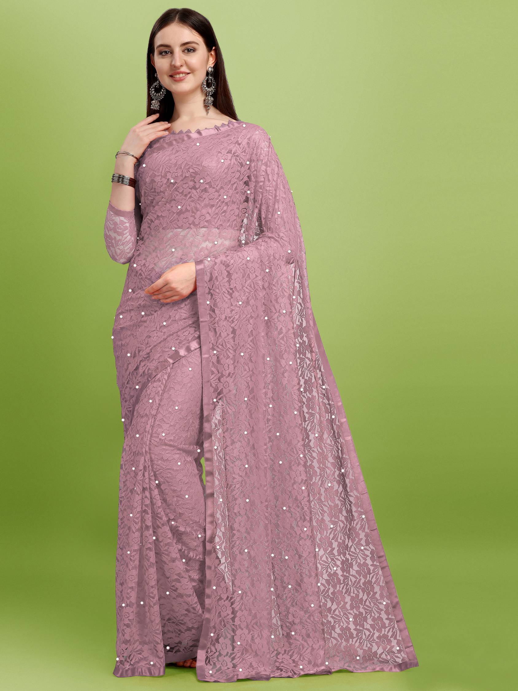 Net, Lace, Wedding Look, Fancy Border, Festive Look, Figure Motif, Day Festive, Occasional Sari/Party Sari