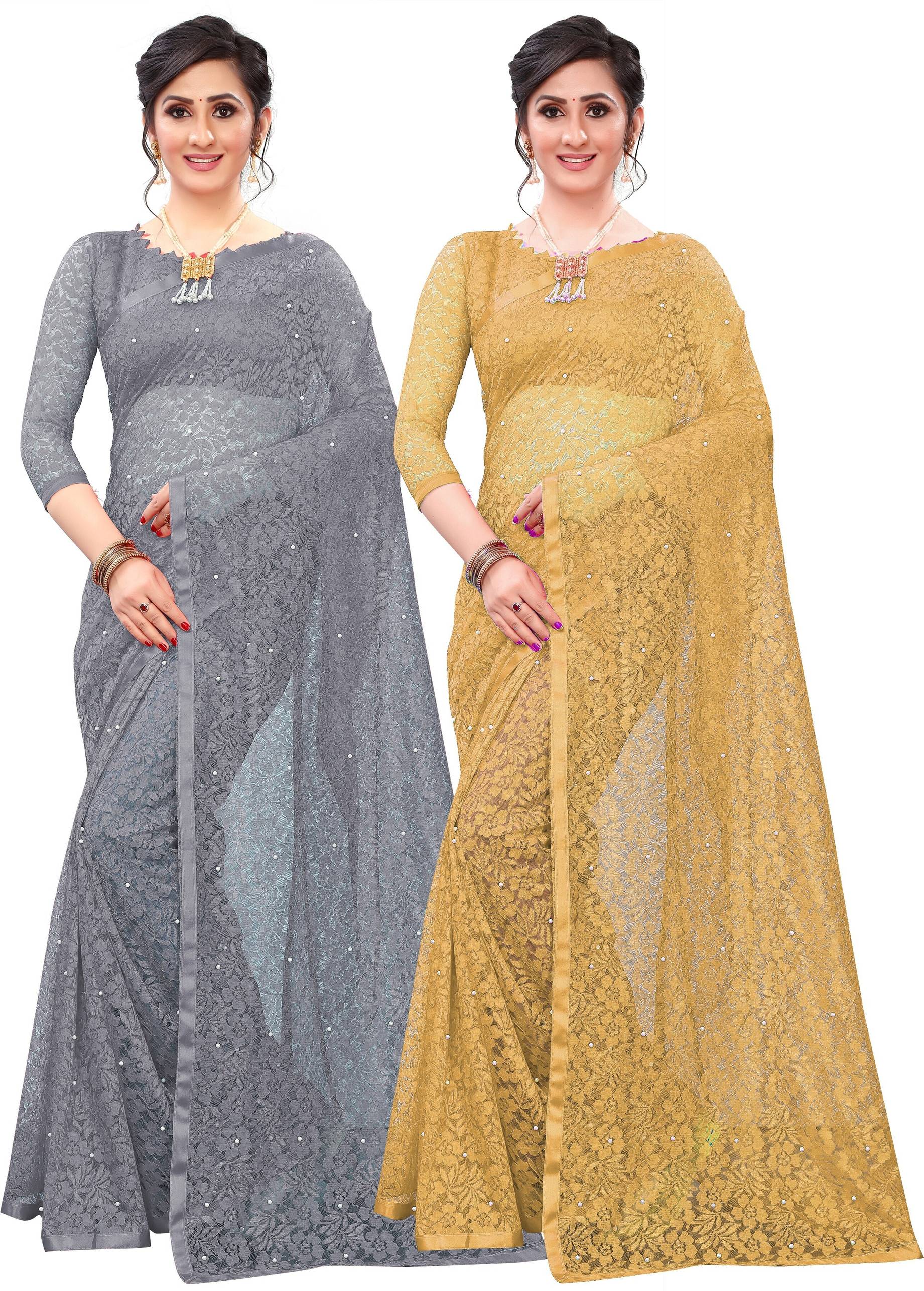 In Packet Contains Pack Of 2 Saree As Mentioned Colors With 2 Blouse Piace