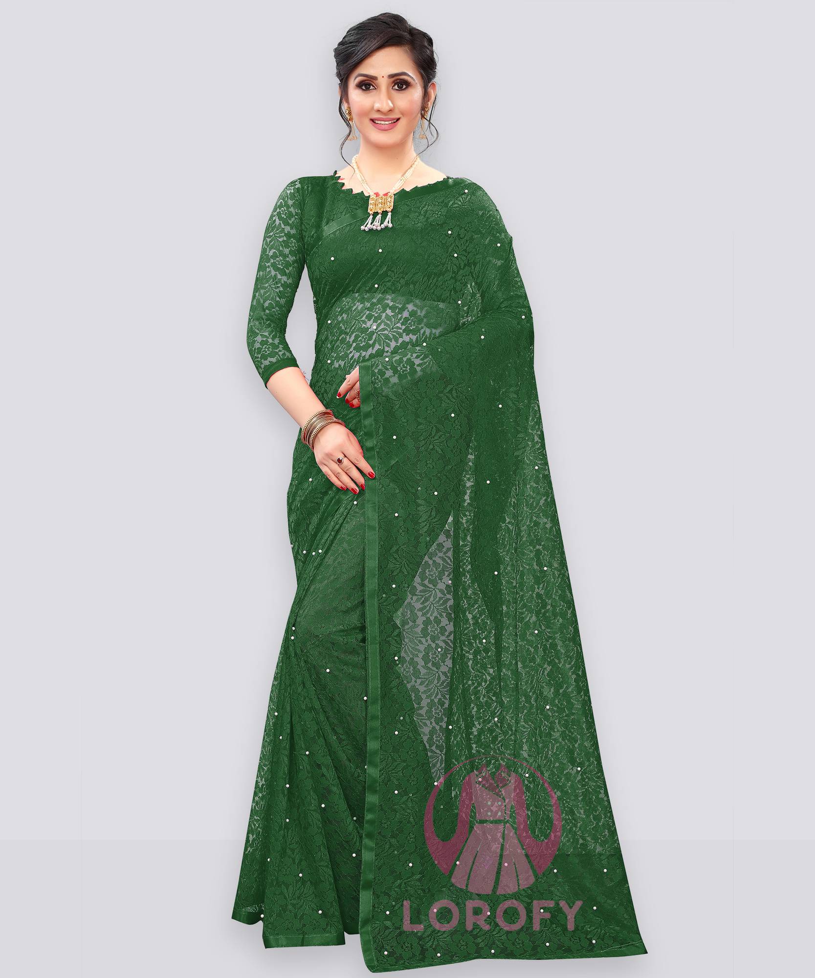 LOROFY Self Design Bollywood Net Saree (Multicolor)