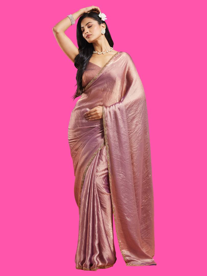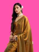 Solid/Plain Bollywood Organza, Silk Blend Saree (Gold)