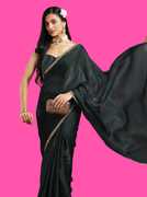 LOROFY Solid/Plain Bollywood Organza, Silk Blend Saree (Gold)