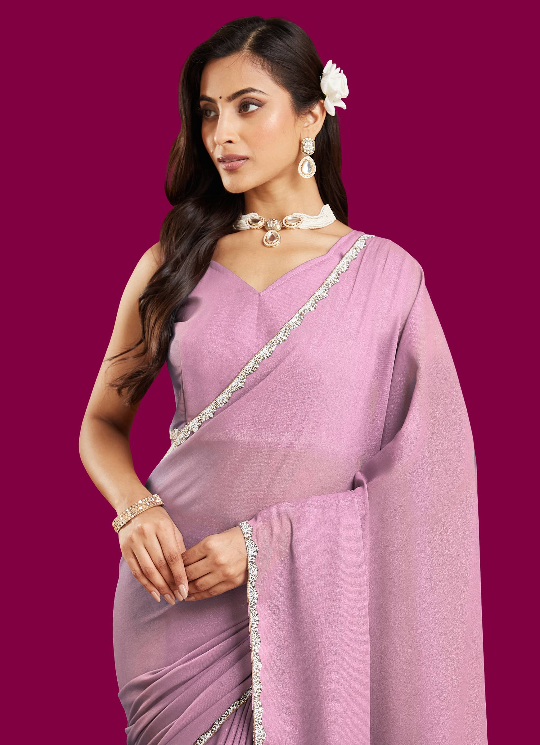 Croza Solid/Plain Bollywood Pure Silk Saree (Pink)