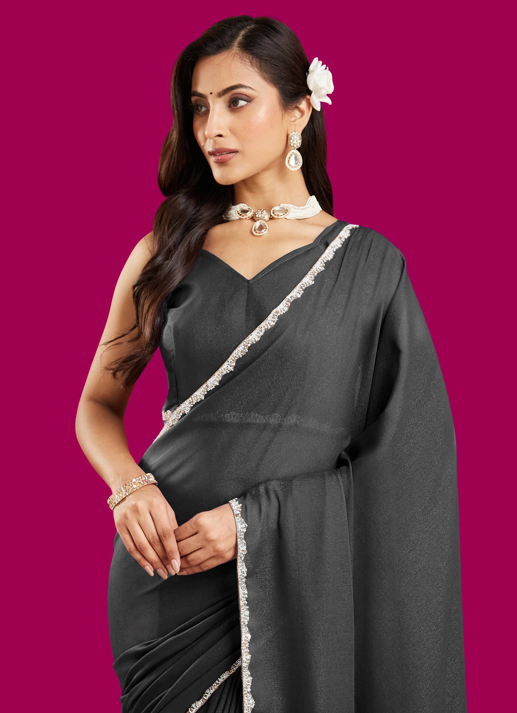 Fabric: Pure Silk, Saree Length: 5.5 metres, Blouse Piece: 0.8 metres (Unstitched), Work / Design: Sparkling Beads & Stone Embroidery, Pattern: Plain Solid with Chic Finish, Occasion: Parties / Weddings / Festive Events, Package Includes: Saree + Blouse Piece