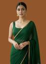 Solid/Plain Bollywood Silk Blend Saree (Dark Green)
