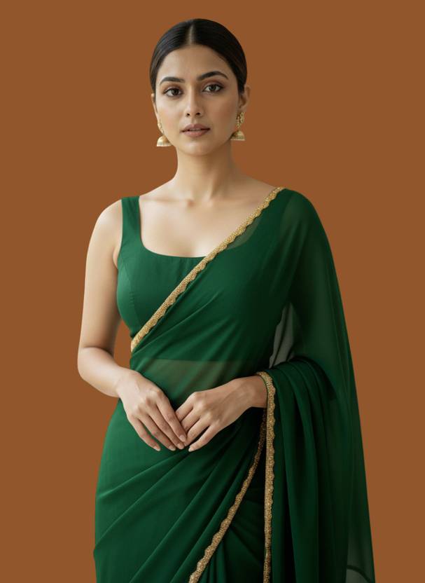 LOROFY Solid/Plain Bollywood Silk Blend Saree (Dark Green)