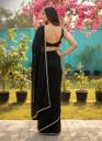 Fabric: Art Silk, Saree Length: 5.5 metres, Blouse Piece: 0.8 metres (Unstitched), Work / Design: Sparkling Beads & Stone Embroidery, Pattern: Plain Solid with Chic Finish, Occasion: Parties / Weddings / Festive Events, Package Includes: Saree + Blouse Piece