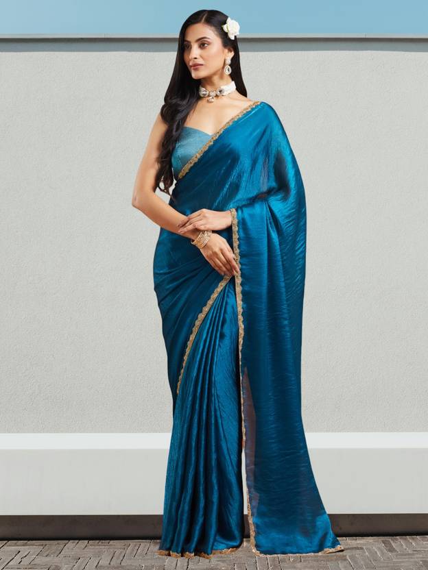 Festive silk saree with two-tone embroidered lace detailing and an included unstitched blouse piece for personalized fitting. Smooth, lightweight fabric ensures easy draping, making it ideal for parties, weddings, or casual celebrations. A perfect blend of elegance, style, and comfort for any occasion.