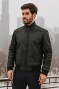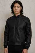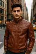 Men Solid Leather Jacket