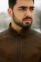 Men Solid Leather Jacket