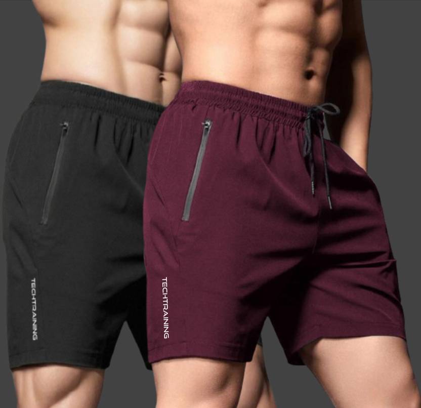 LOTHRIC Solid Men Black, Maroon Gym Shorts