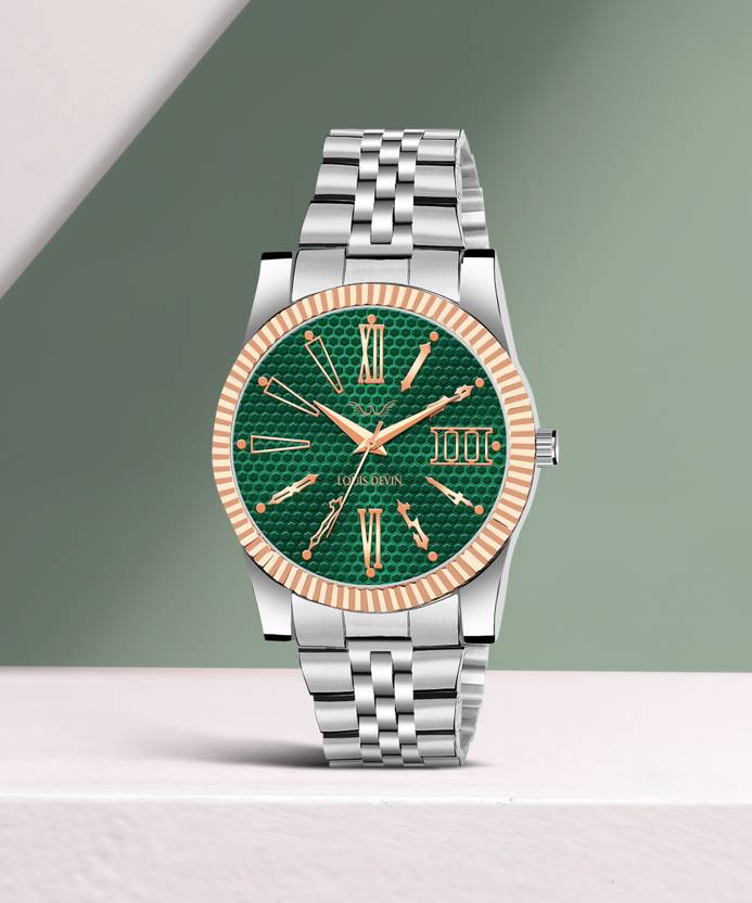 A stylish & trandy heavy metal analog wrist watch for men from Louis Devin with a rose gold finish on the case.
