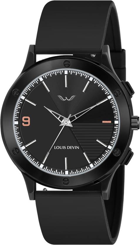 Elegant & classy black silicone strap analog wrist watch for Men from the house of Louis Devin. High quality silicone strap perfectly complements the black case and makes this watch an attractive time-piece for your collection.