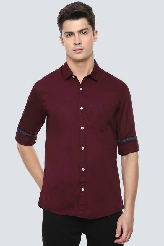 Louis Philippe Jeans Men Solid Casual Maroon Shirt