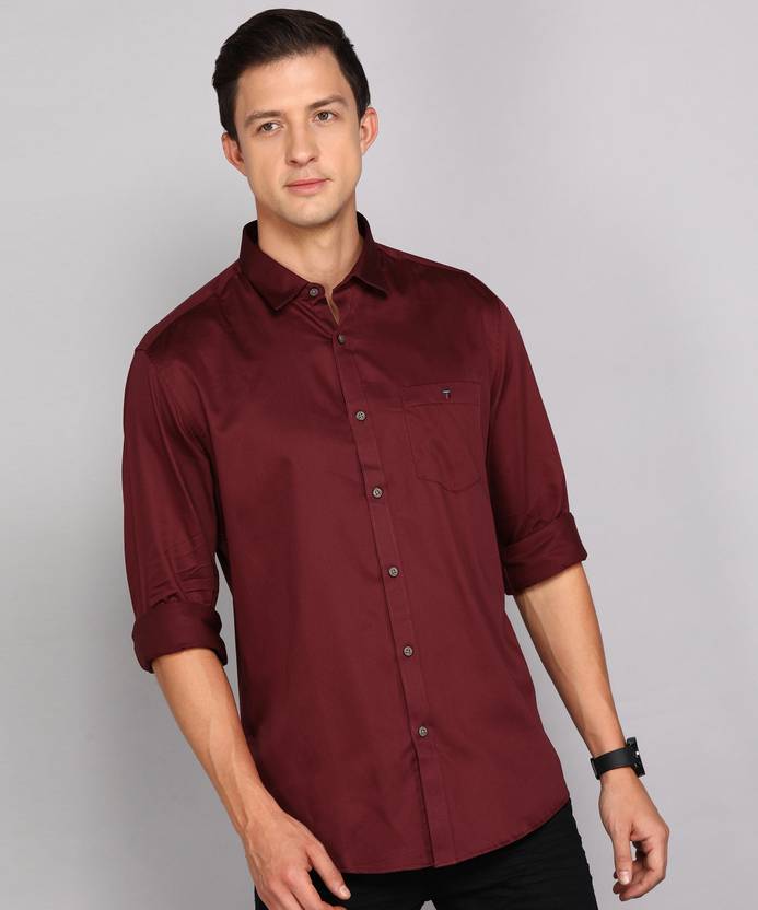 Louis Philippe Jeans Men Solid Casual Maroon Shirt