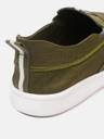 A pair of round-toe olive green slip-on sneakers, has regular styling, lace-up detailTextile upperCushioned footbedTextured and patterned outsole . Change up your everyday style and opt for these well-designed Louis Philippe casual shoes. Keep it casual for your date by matching this olive pair with trim denims and a classic leather jacket.