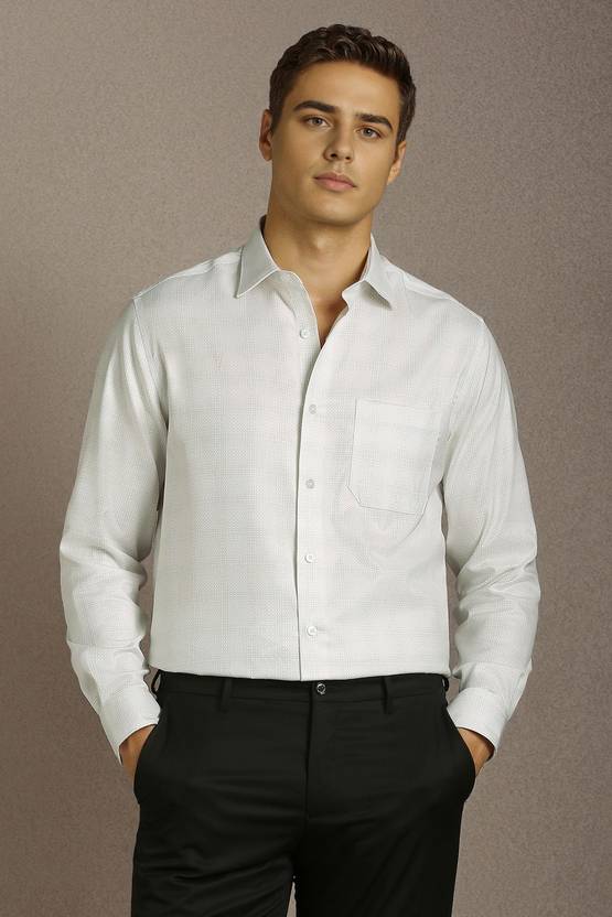 Step into elegance with the Louis Philippe formal shirt in white, adorned with a timeless check pattern. Crafted from premium cotton, this shirt ensures breathability and comfort, making it a perfect choice for sophisticated occasions. Its refined design seamlessly combines style with functionality, enhancing your professional look. Elevate your wardrobe with this versatile piece that embodies luxury and sophistication, standing out on any formal occasion.
