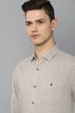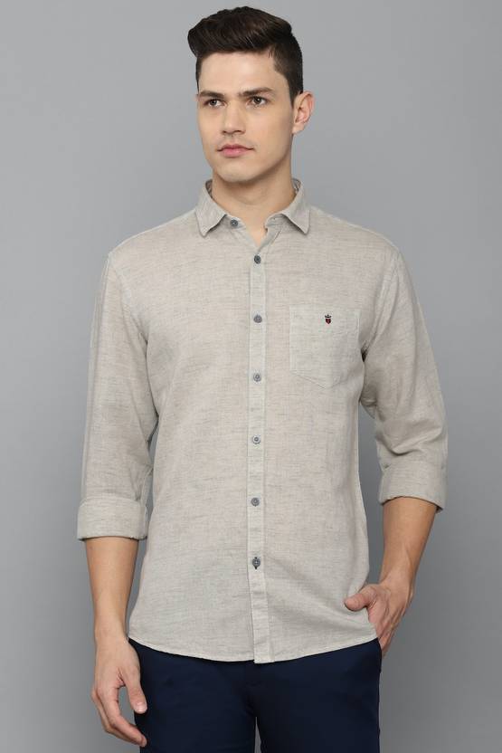 Showcase your refined sartorial taste in this Beige Textured shirt from Louis Philippe Sport at a Casual event. Tailored in Slim Fit , this shirt features a Regular Collar , Full Sleeves , and is crafted from exquisite 52% Linen and 48% Cotton.