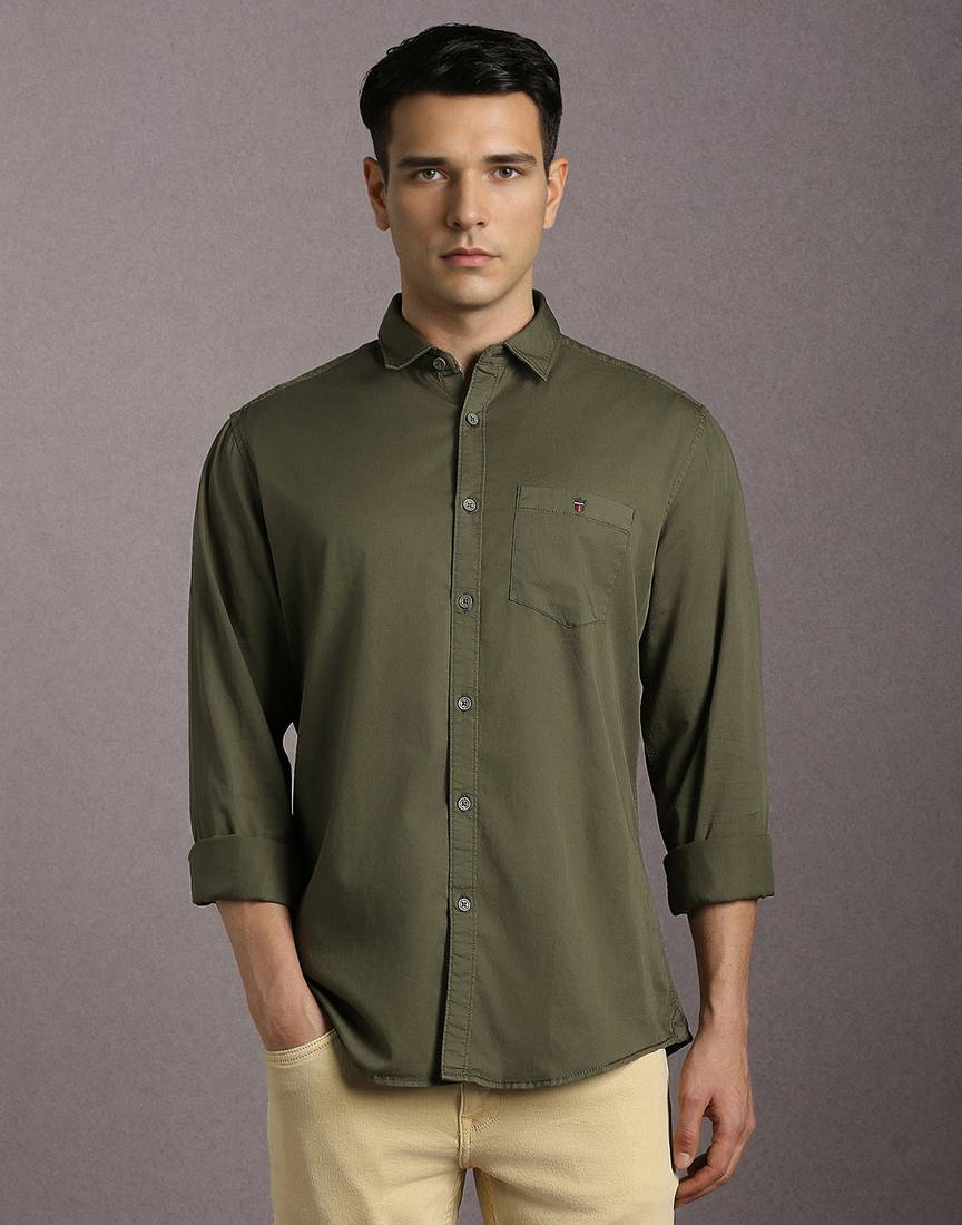 LOUIS PHILIPPE Men Solid Casual Green Shirt