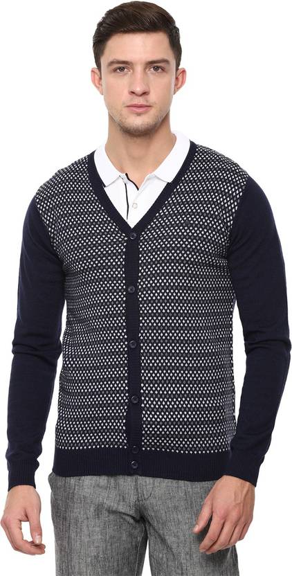 LOUIS PHILIPPE Self Design V Neck Casual Men Blue Sweater