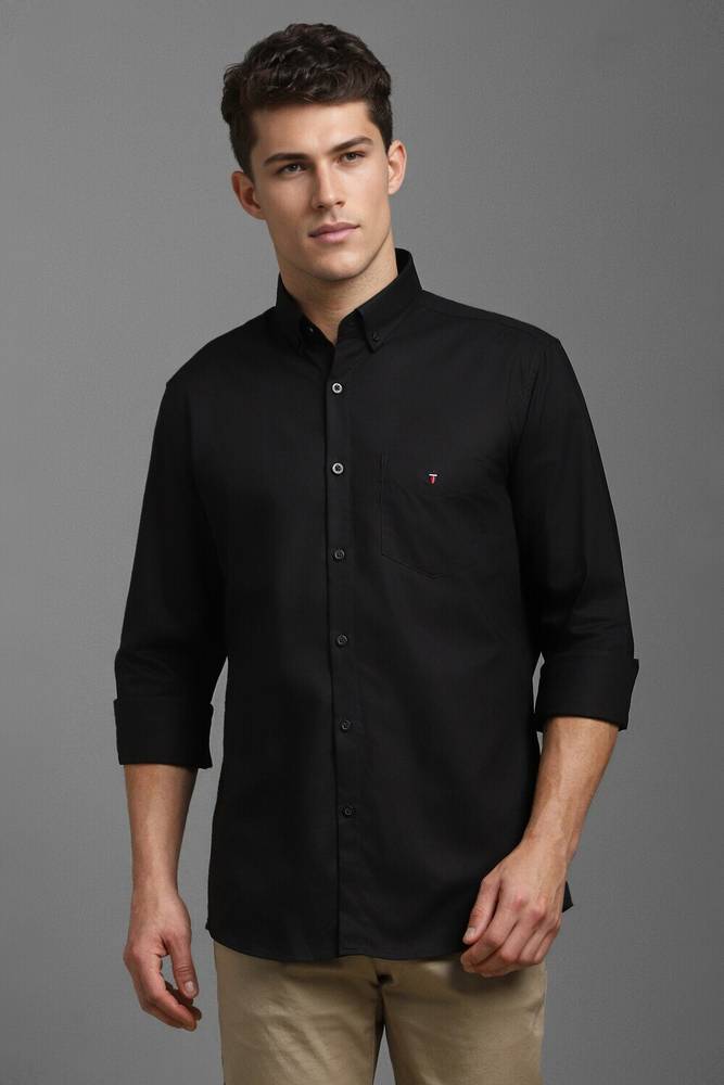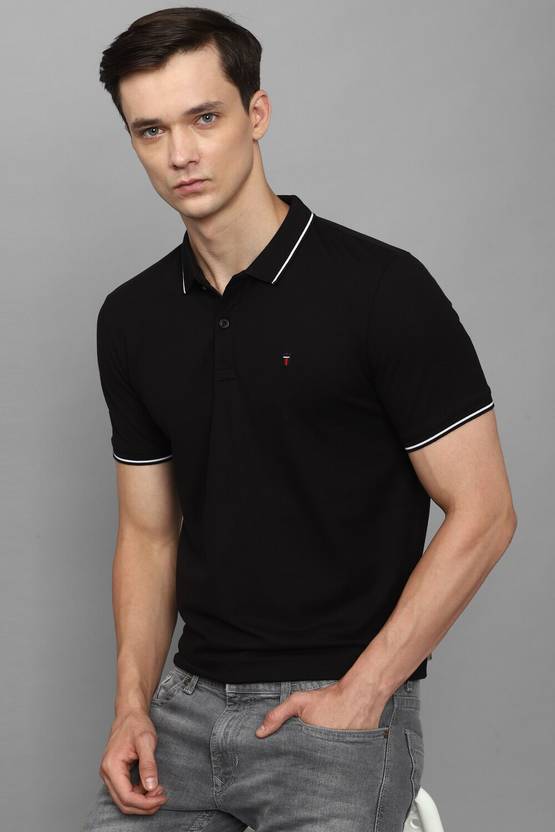 LOUIS PHILIPPE Solid Men Polo Neck Black T-Shirt