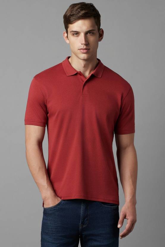 Men Solid Polo Neck Pure Cotton Red T-Shirt
