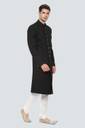 Look casually graceful in this black textured ethnic set of kurta and Pyjama by Louis Philippe.