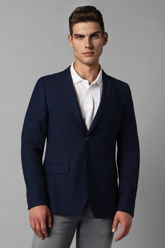 Louis Philippe Sport Chevron Single Breasted Casual Men Blazer (Dark Blue)