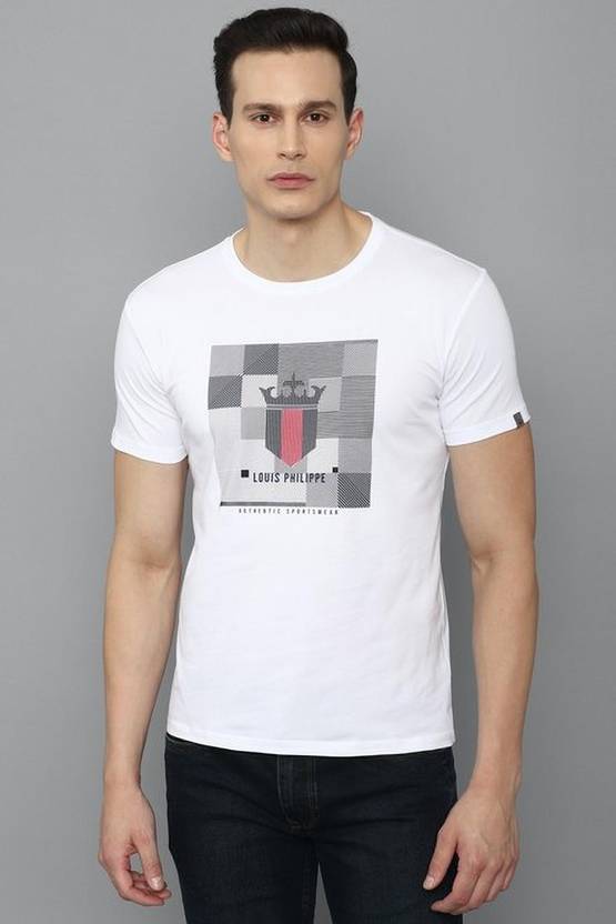 Louis Philippe Sport Printed Men Round Neck White T-Shirt