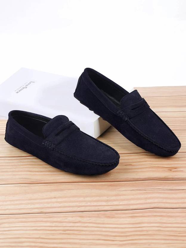 Blue Suede Leather Casual Loafers for Men (ITSU) Size 8