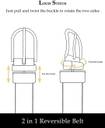 This versatile belt fits waist sizes ranging from 28 to 44 inches. The reversible design also provides the added benefit of two different shades, making it ideal for travel. Simply pull the buckle apart, rotate it 180 degrees, and push it back to select a different side. This belt is suitable for both casual and formal looks.