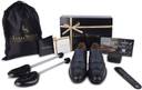 Remove any dirt using a soft cloth, followed by a clear / neutral leather wax to nourish and protect the leather. Insert shoe tree tightly and then rub vigorously with the polishing glove to restore the leather’s original lustre