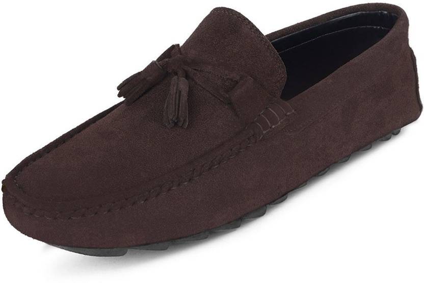 Men's Italian Tassel Loafer Moccasins Brunette Brown Suede Loafers