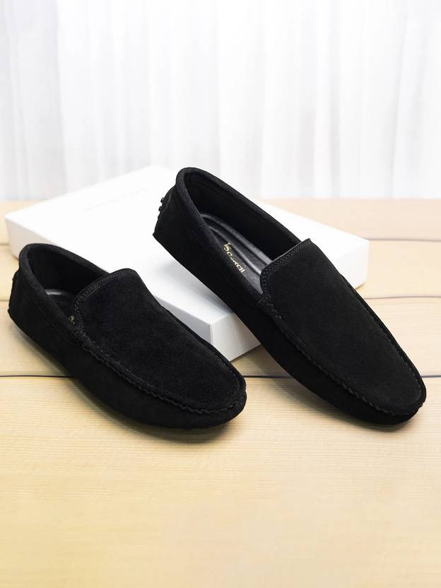 Men's Obsidian Black Italian Suede Leather Driving Loafer Moccasins