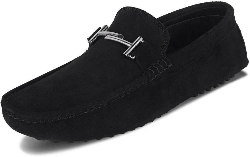 Mens Black Stylish Suede Leather Casual Loafers (ITSUDJB) UK 11