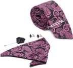 • PACKAGE INCLUDES: Necktie measuring 3'' (Modern Tip width)� 60'' (Tie length), matching pocket square, Tie Pin, Stylish Cufflinks, Designer Brooch, Warranty Card, Loyalty Card and Greeting Card all come in a signature case