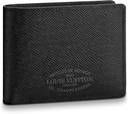 Louis Vuitton wallet takes on a vintage feel in scratch- and water-resistant Taiga leather, signed with a retro “Louis Vuitton Malletier” stamp, inspired by the labels used inside Louis Vuitton trunks beginning in 1875. Eminently practical, the compact Multiple has numerous slots for credit cards and receipts as well as compartments for bills. Taiga leather. Cowhide-leather lining. Cowhide leather trim. Dimensions: 4.53 x 3.54 x 0.59 inches.