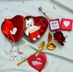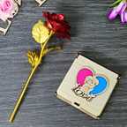 LoveGift Golden Rose with Heart Shape Gift Box | Rose Gift | Love Gift Set Red Rose Artificial Flower (25 cm, Pack of 1, Single Flower)
