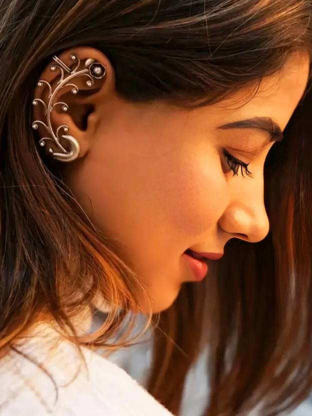 Elegant silver-plated floral ear cuff with a non-piercing wrap-around design, perfect for daily wear or parties. Lightweight and comfortable.”