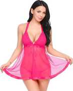Lovie's Super hot babydoll lingerie. Transparent lace and mesh material , cute satin bow in front adds a subtle sexy touch. Babydoll nightwear lingerie comes with a matching g string / panty. Select FREE SIZE for : Bust (28 to 36 inch) , Waist ( 28 to 34 inch).