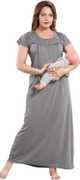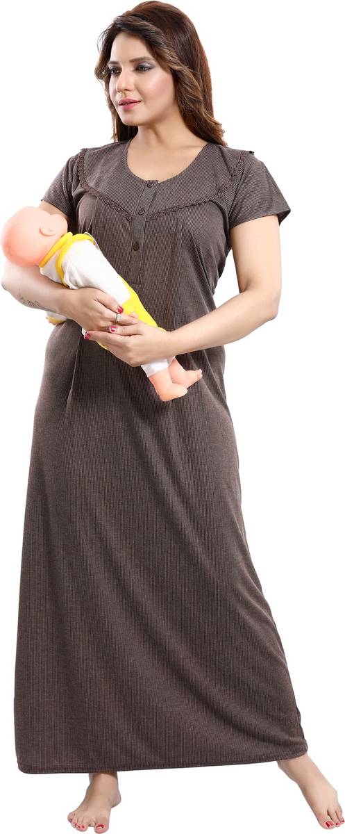 Make your feeding session relax & comfortable with this Maternity Gown / Feeding Gown. Made up of Cotton. This striped nightgown has vertical zipper on both side for feeding purpose, button & lace details, short sleeves & Round Neck. This Nighty is the ultimate blend of comfort and style.
