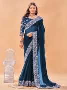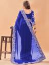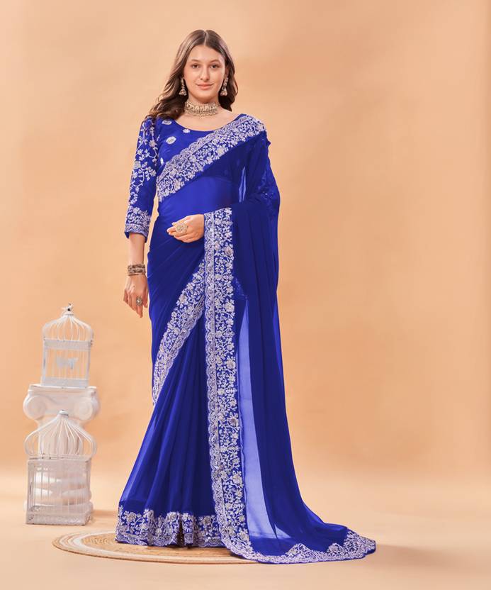 Exquisitely crafted, this embroidered saree from Lovisa Fashion is a true masterpiece. The intricate sequin work on the navy blue georgette fabric creates a mesmerising floral pattern that will leave you spellbound. This saree comes with an unstitched blouse piece, allowing you to customise the fit to your liking. Drape yourself in this elegant ensemble and feel like royalty at your next festive occasion or wedding. With its lightweight and flowy fabric, this saree promises utmost comfort without compromising on style. Embrace timeless beauty and make a lasting impression with this exquisite saree from Lovisa Fashion. Please note that dry cleaning is recommended for best results.