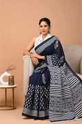 FABRIC : Pure Soft Cotton mulmul saree with similar fabric Blouse piece|| WORK: Jaipuri Printed ,Block print ,Traditional Ethnic Look,Indigo Print, Shibori Print, Bagru Print,Daily wear printed cotton mul mul saree|| OCCASION:- Formal,Casual,Occasional,Daily wear cotton mulmul saree|| LENGHT : The Total Lenght of the Saree is 6.30 mtrs including Blouse Piece|| SAREE SIZE : Length – 5.50 Mtrs , Width - 1.10 Mtrs|| BLOUSE SIZE : Unstitich Fabric - Length :0.80 mtrs, Width : 1.10 Mtrs (Approx.) - Unstitched blouse fabric comes with saree so you can make as you like|| BLOUSE STITCHING : This Saree comes with Unstitched Blouse Piece|| WASHING INSTRUCTIONS: Machine wash or Normal wash,Do Not Bleach||