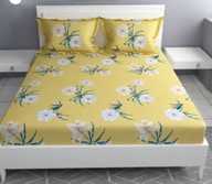LOXICA Cotton Queen Fitted (Elastic) 600 TC Printed Bedsheet (Pack of 1, Dark Blue)