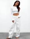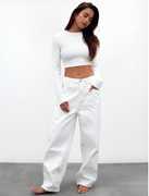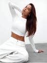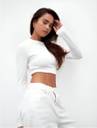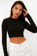 This long-sleeve crop top offers a sleek, minimal aesthetic with a body-skimming fit that highlights natural shape and movement. Designed with a smooth crew neckline and extended sleeves, it gives a modern, streamlined appearance. The cropped cut pairs effortlessly with high- or mid-rise bottoms, making it a versatile everyday essential for layering or wearing on its own. Lightweight stretch fabric provides comfort while maintaining its clean, structured look.