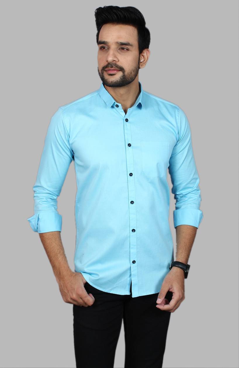Liza Martin Men Solid Casual Light Blue Shirt