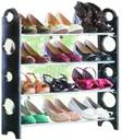 LS Letsshop Stackable 12 Pairs Shoe Rack Organizer,4 Layer Shoe Rack Plastic Collapsible Shoe Stand (Black, 4 Shelves, DIY(Do-It-Yourself))