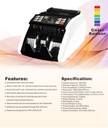 Automatic Start, Stop and Clear, With UV, MG, MT, IR,3D, Color detection While Counting Notes, With Batch , Add and Self Examination Function, Software Can Be Updated Through Rs-232 Port