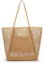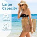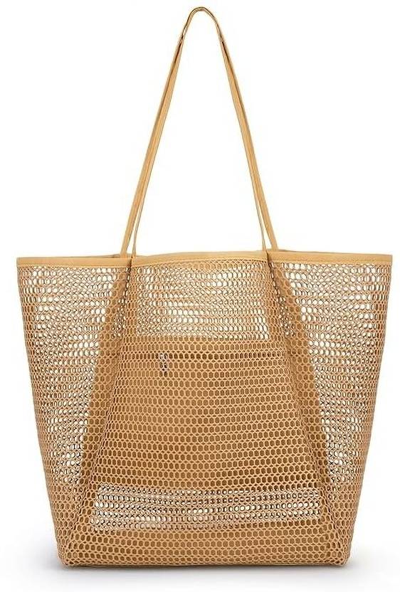 Beige Women Tote Lightweight Foldable Beach Tote with Zipper Pocket for Vacation Beach Pool Trip