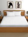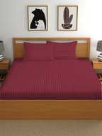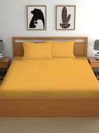 Lucifer Cotton, Satin Double Flat 280 TC Striped Bedsheet (Pack of 1, White)